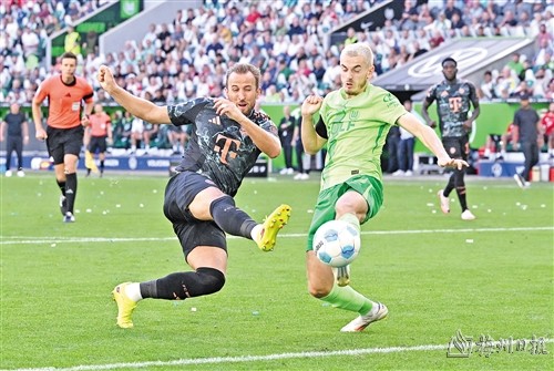 当日,在2024-2025赛季德国足球甲级联赛首轮比赛中,拜仁慕尼黑队客场3∶2战胜沃尔夫斯堡队。 (新华社发)