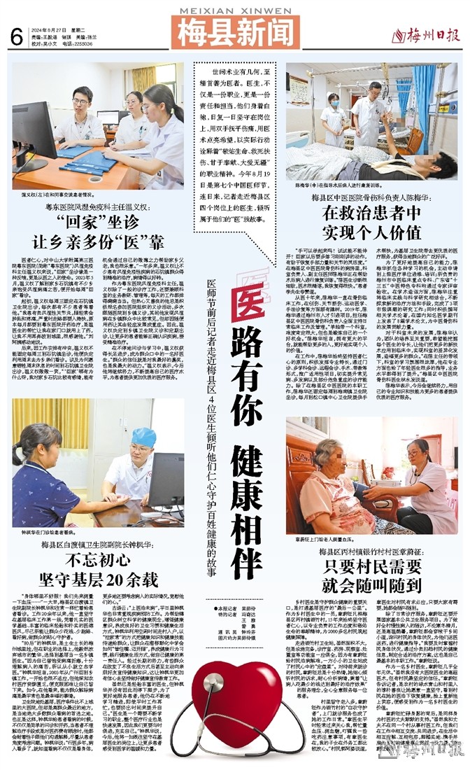 世间术业有几何,至精首善为医者。医生,不仅是一份职业,更是一份责任和担当,他们身着白袍,日复一日坚守在岗位上,用双手抚平伤痛,用医术点亮希望,以实际行动诠释着“敬佑生命、救死扶伤、甘于奉献、大爱无疆”的职业精神。今年8月19日是第七个中国医师节,连日来,记者走近梅县区四个岗位上的医生,倾听属于他们的“医”线故事。