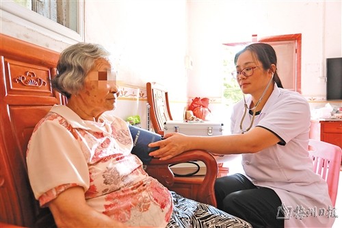 村里留守老人多,章蔚征作为银竹村的“白衣守护者”,上门就诊服务也成了她的工作日常。“章医生平时经常过来关心我,帮忙量血压、测血糖,叮嘱我一些吃药注意事项,有章医生在,我的子女在外务工都比较放心。”村民郭阿婆说道,章医生对村民有求必应,只要大家有需要,她都会随叫随到。