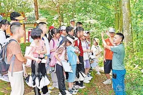 本报讯 (记者廖玉芳)8月27日,在树木丛生、百草丰茂的阴那山省级自然保护区,40名梅州日报小记者开展了一场以“绿野寻珍·守护松林”为主题的研学活动,沉浸式体验自然教育。