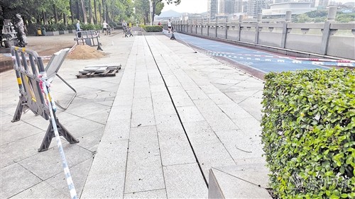 本报讯 (记者陈坚平)近日,一条梅州大堤南堤归读公园段河堤路面出现花岗岩地板开裂的视频在抖音和微信视频号平台引起市民关注和热议。记者了解到,相关部门已进行处置,目前无险情,破损的花岗岩地板已铲除并重新铺设。