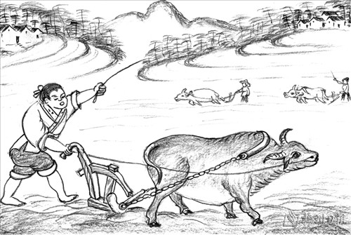 小雪之时是冬天,擸只牛牯去犁田。