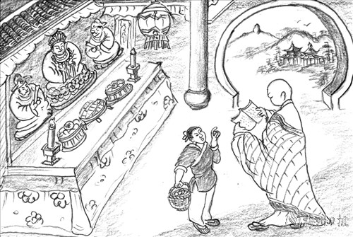 香钱座米无人分,跟佛和尚自家倒。