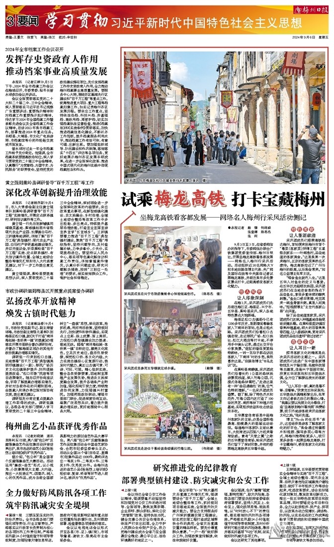 9月3日至5日,在省委网信办的指导下,市委网信办联合广铁集团党委宣传部、梅州日报社,开展坐梅龙高铁看客都发展——网络名人梅州行采风活动。活动组织近30名网络大V和本地自媒体博主代表、央广网及国际在线等中央媒体记者试乘梅龙高铁,并前往我市多处景区景点打卡,近距离感受客家文化魅力。