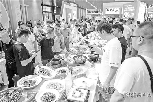 9月6日,在长沙国际会展中心,参观者在观看展出的特色菜肴。