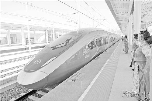 图为杭温高铁列车驶入桐庐东站。