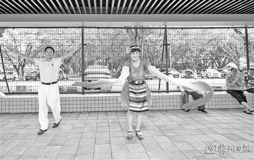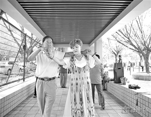 这对老夫妻叫王文江、林媚媛。近些年来,老夫妻每天上午八点准时从家里出发,前往梅江公园长廊或市老干活动中心,用歌声和舞蹈抒发对生活的热爱。他们的快乐能量吸引了越来越多兴趣爱好相同的老年朋友聚集在他们周围,大家一起唱啊跳啊,身心愉悦。他们说,开心过好每一天,身体比以前更好了,不用花钱去医院,其实就是赚了,生活就富足了!