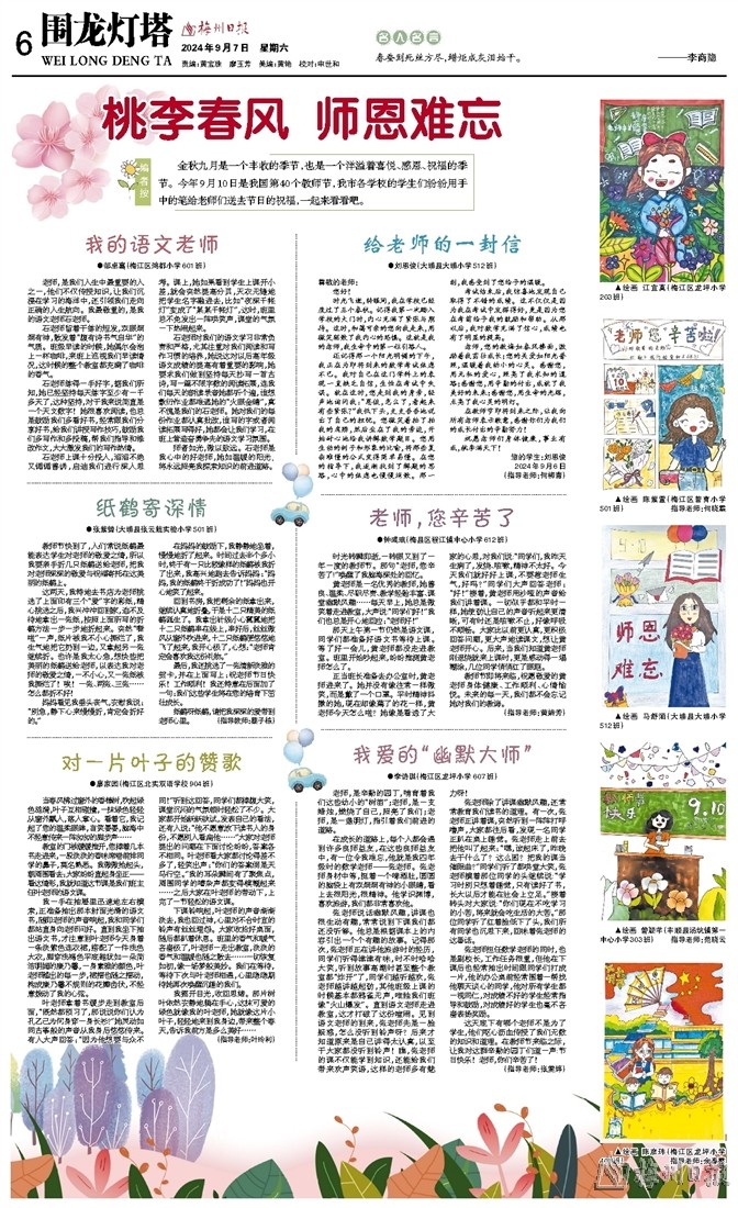 金秋九月是一个丰收的季节,也是一个洋溢着喜悦、感恩、祝福的季节。今年9月10日是我国第40个教师节,我市各学校的学生们纷纷用手中的笔给老师们送去节日的祝福,一起来看看吧。