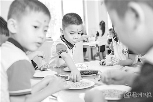 在蕉岭县实验小学校园内,一场传统入学礼已准备就绪。一年级的小萌新们身着华裳、正衣冠,行敬师礼、学写“人”字,在一撇一捺间感受成长的喜悦。在家长们的见证下,老师们还在孩子眉间点上朱砂,一颗颗红痣寄托着美好愿望,寓意开启智慧、眼明心亮、发奋读书。“小学是人生重要的启蒙阶段,是探索知识、启迪人生的重要起点,我们为孩子们准备了传统启智礼。”蕉岭县实验小学党支部书记、校长夏映芬说。