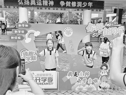 “哇!这里装扮得真漂亮!”为迎接孩子们的归来,蕉岭县实验幼儿园组织了一场别开生面的趣味仪式,小朋友们一来到校园,就被各种沉浸式体验所吸引,纷纷表示兴奋和好奇。“耶!”“笑一个!”微笑、比耶、聚焦……在幼儿园精心布置的打卡区前,家长们纷纷举起手机,定格下孩子人生中的崭新时刻,留下他们新学期的美好足迹。该幼儿园园长赖碧云站在校门口,为每一名走进校门的学生送上新学期的祝福。“在开学前,我们对幼儿园进行了全面的卫生清洁,教室等各个区域都进行了彻底清扫和消毒,为孩子们创造一个安全、卫生的学习生活环境。”赖碧云说,幼儿园还对设施设备等进行了全面检查和维护。