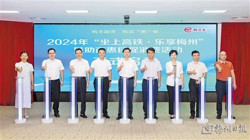 本报讯 (记者李艳良)9月12日上午,梅龙融湾 梅品“惠”聚——2024年“坐上高铁·乐享梅州”暨助商惠民促消费活动启动仪式在梅城举行。