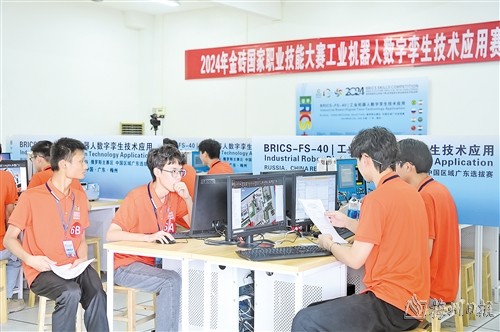 本报讯 9月12日至13日,由金砖国家工商理事会中方理事会、一带一路暨金砖国家技能发展国际联盟、教育部中外人文交流中心主办、广东梅州职业技术学院承办的2024金砖国家职业技能大赛工业机器人数字孪生技术应用赛项(广东赛区选拔赛)在广东梅州职业技术学院校本部东区举行,本次大赛吸引了来自广东省31所职业院校的42支队伍、84名选手参赛,齐聚一堂,共同竞技,展现各自在工业机器人数字孪生技术应用方面的实力与风采。