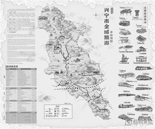 作为拥有文化之乡、华侨之乡、中国民间文化艺术(杯花舞)之乡、中国南方版画之乡、中国花灯之乡等美誉的兴宁,独具自然优势和人文荟萃。近日,兴宁再次推出手绘地图,上面标注了兴宁各处的旅游景点,还清楚标注了兴宁的旅游服务商的相关信息。