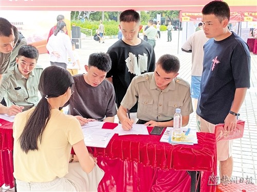 本报讯 (记者郑炜梅 实习生施焕坤)日前,梅州市2024年秋季退役军人暨军嫂专场招聘会在梅城剑英体育馆广场举办。