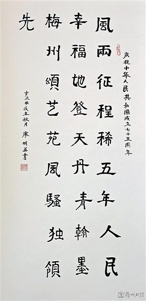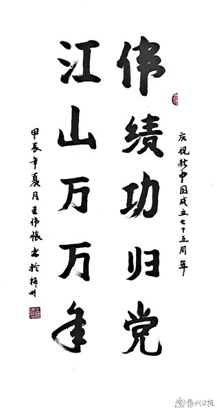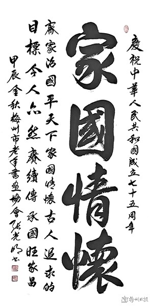 丹青抒怀,书画传情。9月25日至10月8日,由广东省老干部大学、广东省老干部书画诗词摄影家协会、梅州市老干部大学、梅州市老年书画家协会主办,广东中国客家博物馆承办,梅州泽山口腔医院协办的“心向祖国——庆祝中华人民共和国成立75周年书画作品联展”将在梅州市华侨博物馆展出。现将联展作品部分选登如下,以飨读者。