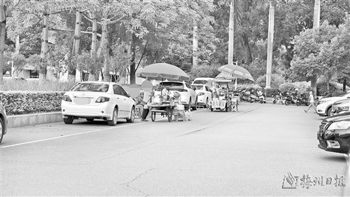 在百岁山郊野公园停车场,记者看到大部分市民都能按照规划的停车位规范停车,而个别市民为了车辆不被太阳照晒,随意停放在过道上。在剑英公园停车场,一些流动商贩违规占用停车位,在停车位上摆放桌凳,吸引市民购买品尝美食。有些市民则将车辆停放在有充电桩的新能源汽车充电车位,导致一些前来充电的车辆无法正常停放。