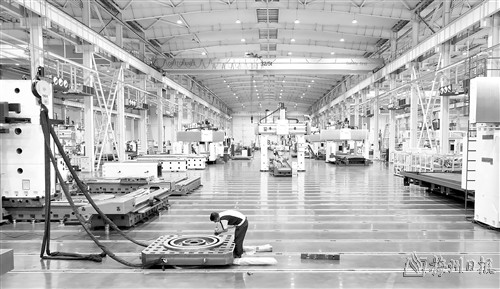 9月21日,在山东威达精工智能装备有限公司,员工对数控机床进行调试。