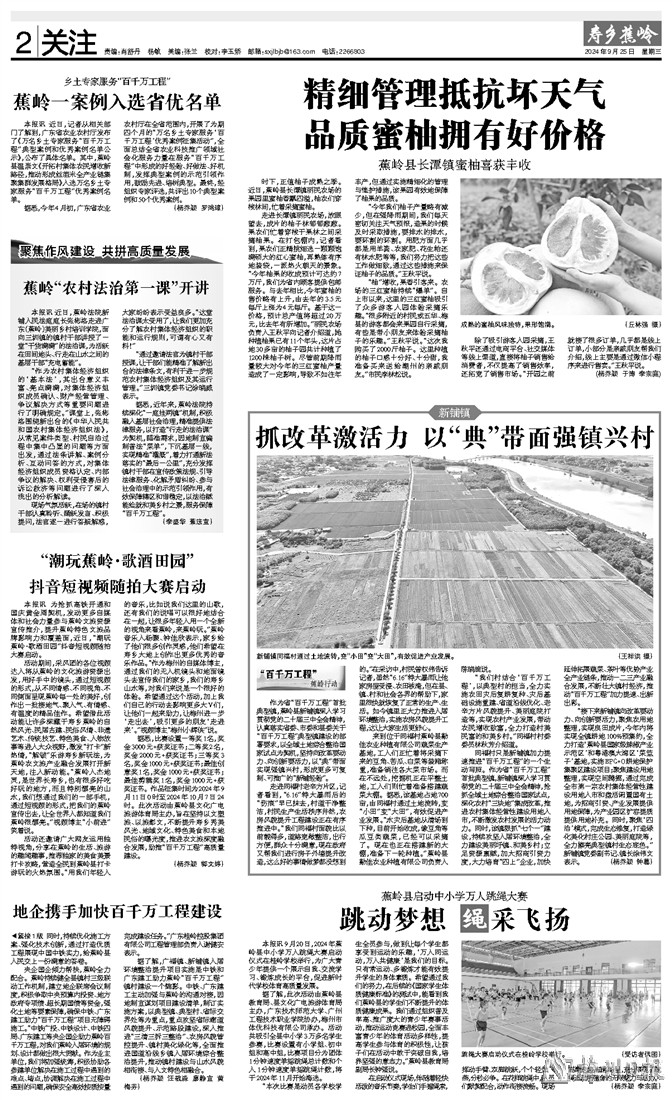 作为省“百千万工程”首批典型镇,蕉岭县新铺镇深入学习贯彻党的二十届三中全会精神,认真落实省委、市委和县委关于“百千万工程”典型镇建设的部署要求,以全域土地综合整治国家试点为契机,坚持向改革要动力、向创新要活力,以“典”带面实现强镇兴村,形成更多可复制、可推广的“新铺经验”。