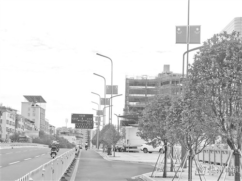 在县城的部分路段主干道,工作人员正在高空作业车上施工,有条不紊地组装、调试红旗,部分路灯杆上已挂起了鲜艳的国旗,节日的气息扑面而来(如左图,袁志鹏摄)。