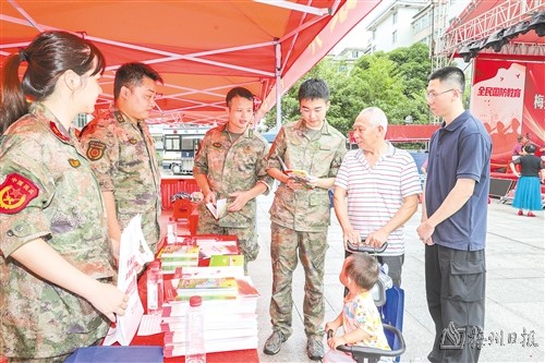 本报讯 (记者李盛华 实习生柯苑婷)9月26日上午,梅州市全民国防教育宣传活动在梅城客都汇广场举行,今年的活动主题是“依法开展国防教育