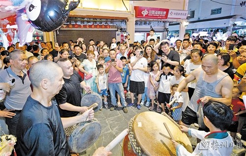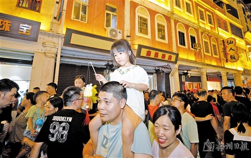 中秋夜当晚,凌风东西路与元城广场热闹非凡,烟火气十足。猜灯谜、钓花灯、制作手工月饼、街舞快闪、锣鼓秀……一个个精彩的活动,吸引众多游客参与,大家沉浸在这份古老而又热闹的氛围之中。“我是乘坐梅龙高铁回乡过节见家人的,体验感很好,一个半小时就到了。恰好嘉应古城有新变化并且还开展了活动,我必须来捧捧场,感受家乡的变化,欣赏古城夜色。以后也会推荐给深圳的朋友来游玩。”归乡游子侯佳怡认为,无论是家庭出游、朋友聚会,在这灯光璀璨的夜晚,都能留下属于自己的回忆。