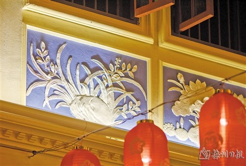 沿着步行街行走,踏入凌风西路,首先映入眼帘的一把把悬挂在空中的油纸伞,描绘着不同县市区特色。记者注意到,改造过后的路面铺上了青石砖,还镶嵌了关于嘉应古城的历史文化和示意图,沿街外立面设计则融合客家文化的泥塑。美景之外,种类丰富的特色店铺同样装点着古老的街区,拉满期待值的花生椰奶雪花冰、南瓜丸、煎圆、仙人粄等美食,让游客忍不住驻足品尝。