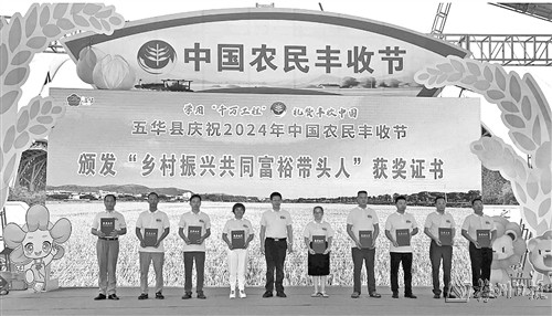 活动现场,首先观看了五华乡村振兴共同致富带头人、产业村长、菩米产业、驻镇帮镇扶村成效宣传片,并为乡村振兴共同致富带头人、产业村长颁发获奖证书。其中,五华县“产业村长”擂台赛中决出一等奖1名,二等奖2名,三等奖3名;五华县2024年“乡村振兴共同致富带头人”产业经营成效奖一等奖5名,二等奖10名,三等奖15名。