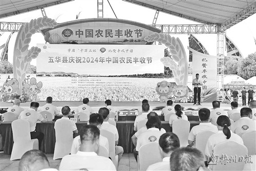 稻熟鱼肥瓜果香,长乐大地庆丰收。9月20日,五华县在水寨镇良美村举办庆祝2024年中国农民丰收节活动。活动主题为“学用‘千万工程’ 礼赞丰收中国”,通过开展宣传展示、颁奖表彰、菩米产业推动、非遗表演、百桌菩米宴等丰富多彩活动,与农民代表等社会各界共话丰收、同享喜悦。