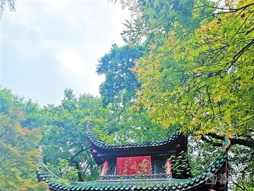 岳麓书院里除了秋风拂过树叶发出的沙沙声之外,周围一片静谧。草地上铺着一层稀疏的落叶。我心里清楚地知道,再过些时日,这里就会有金桂吐露芬芳,弥漫在小径之上,还会有枫叶染上红妆,在枝头摇曳生姿。“停车坐爱枫林晚,霜叶红于二月花”,到那时,我定会再来这里,好好感受一番深秋的迷人景致,那时的爱晚亭会深陷红色枫叶的簇拥之中,开出淡淡雅致。