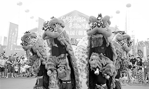 图为9月29日拍摄的第23届中国(揭阳)玉文化节开幕式上的醒狮表演。