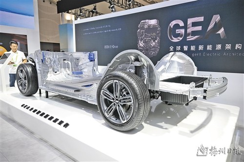 9月28日在吉利汽车集团展台拍摄的GEA全球智能新能源架构。