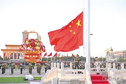10月1日4时许,华灯相伴,12.3万人聚集在首都北京天安门广场,共同等待着那一抹升起的“中国红”,炽热的期盼紧贴着祖国的心房。