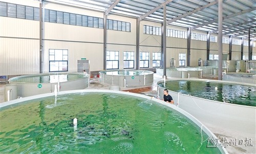投放鱼苗当日,记者走进该项目一期1号厂房,只见宽阔明亮的厂房里,现代化的鱼池整齐排列,工作人员忙着将一桶桶鳜鱼苗投放到鱼池中。“我们首次投放的鳜鱼苗约有6.4万条,养殖大约五至六个月后可产出商品鳜鱼。”该项目有关负责人介绍,今年1月至9月,该项目已完成投资1.18亿元,目前项目一期1号厂房已完成部分鳜鱼苗投放,2号厂房正在进行设备安装,3号厂房正在有序施工中,整体按照计划进度推进建设。