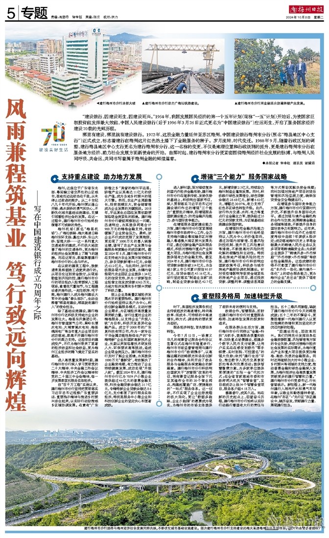 进入高质量发展新时期,建行梅州市分行深入学习贯彻党的二十大精神、中央金融工作会议精神、中央经济工作会议精神和党的二十届三中全会精神,每一步发展都紧扣服务实体经济。