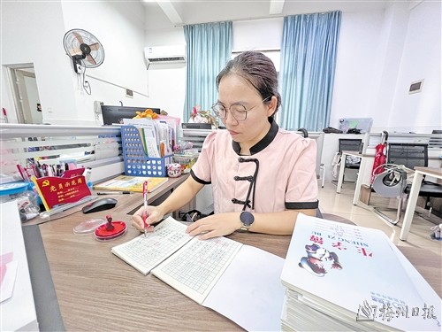 在丰顺实验小学一年级办公室,记者见到了正在批改作业的何金开。“在工作前5年,我曾在山区农村任教,在工作后10年中,我主要在县城任教,一直负责低年级(一年级)的语文教学工作,并担任班主任的教育管理工作。”何金开告诉记者,从事教育行业源于其家庭对教育的重视和她个人对教育的热爱。