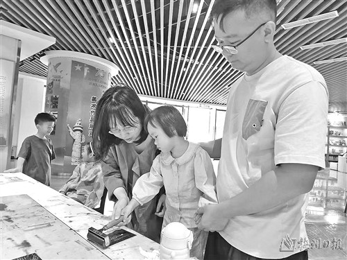 今年国庆期间,兴宁推出了许多“美景+”活动,市民游客不仅可以赏美景,还能参与各类文旅活动。邱蕊参加的便是由兴宁市美术家协会举办的“版画印记·喊你拓印”兴宁版画体验活动,协会根据兴宁旅游景点、非遗文化、文保单位等文化旅游资源,创作出一系列版画作品,供市民游客打卡拓印。