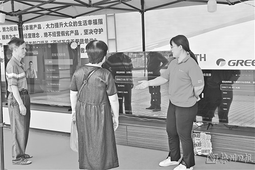 摩托车展位前,也有不少消费者驻足。“这次我们带来了10多种豪爵摩托车参展,各项优惠叠加起来,最高可得6000元折扣。”兴宁市隆丰豪铃机车销售有限公司负责人黄汉威介绍道。