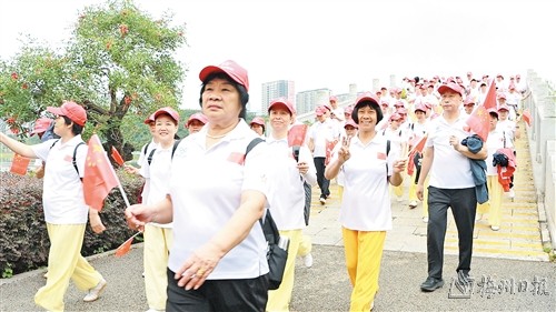本报讯 (记者李伟国)10月9日上午,“九九重阳”第二届广东省老年人徒步大会梅州分会场活动在梅城剑英公园举行。400多位老年人以徒步慢行的运动方式,展现当代老年人健康和谐、积极向上的精神风貌。