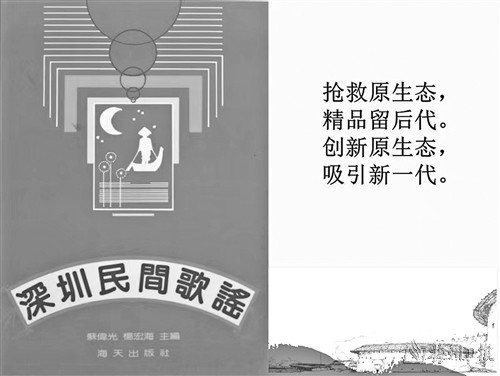 1985年,杨宏海从嘉应学院调到深圳市文化局,把梅州文化资源也带到了特区深圳;1987年,杨宏海发起并创建深圳市民间文艺家协会,带领协会团队下乡采风问俗,开展民间文学三套集成搜集整理工作,出版深圳首部《深圳民间歌谣》(与苏伟光合作)。在盐田沙头角调研时,杨宏海搜集整理了一首原生态盐田山歌,以此歌为例,杨宏海在讲座中特邀优秀作曲家、深圳市客家山歌协会副会长吴志强现场演绎,歌词如下:“去年发誓不养狗,今年发誓不养鸡。阿哥一来狗就吠,聊么两下鸡就啼。”这首山歌表达一位少女与情人约会时,因被狗和鸡干扰导致的愤怒心情,既粗犷野性又情真意切。吴志强以原生态盐田唱腔演唱,博得观众满堂喝彩,表现出传统客家山歌的魅力。