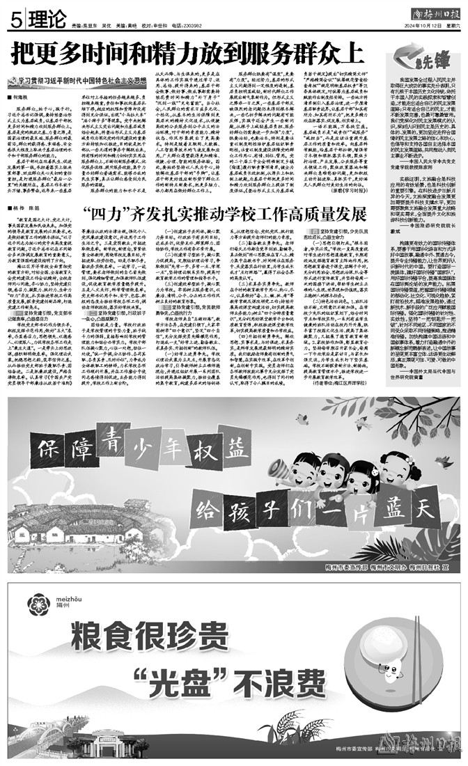 梅江区芹洋学校全面贯彻党的教育方针,对标全国、全省教育大会党的建设工作会议精神,全校老师同心同德,齐心协力,坚持党建引领,感召力、凝聚力、执行力、生命力“四力”齐发,扎实推进学校工作高质量发展,探索党建创新品牌,打造党建工作新亮点。
