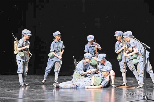 据了解,客家山歌课本剧《金色的鱼钩》是新城中心小学在开展党史学习进校园活动中,结合客家山歌这一国家级非物质文化遗产和小学语文课本创编而来的红色儿童戏剧。该剧叙述了长征途中一位炊事班长接受党组织交给的任务,照顾三个生病的小战士过草地,而不惜牺牲自己的故事,表现了红军战士忠于革命、舍己为人的崇高品质。