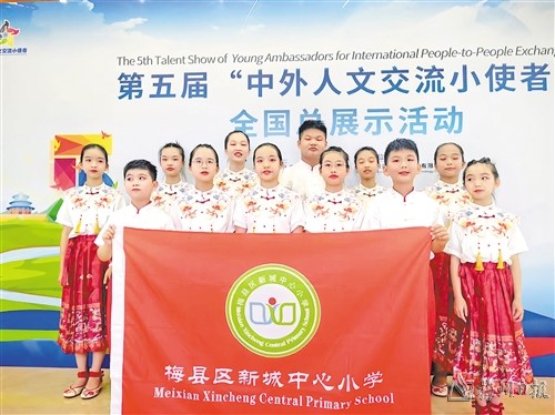据了解,2024年7月8日至11日,以“为中国孩子带来世界,为世界孩子带来中国,让世界更加相知相融”为主旨、由教育部中外人文交流中心主办的第五届“中外人文交流小使者”全国总展示活动在清华大学盛大举行。此前,梅县区新城中心小学山歌社团经过层层选拔,从来自全国的上万个学校团组中脱颖而出,成功晋级,受邀前往清华大学参与全国总展示。