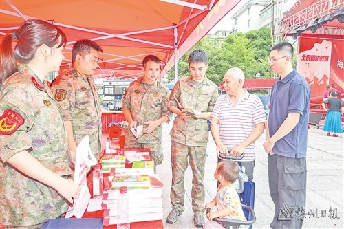 在人流量较大的客都汇广场,随着《我和我的祖国》唱响,一场主题为“依法开展国防教育、提升全民国防素养”的宣传展活动拉开序幕。现场设置了全民国防教育科普墙、国防教育主题手工作品展示等,重点宣传国防教育法规、展示国防建设成就、宣扬革命英雄事迹,吸引众多群众驻足观看。不少家长带着孩子认真参观,表示通过这种形式让孩子从小接受国防教育的熏陶,厚植爱国情怀。现场还开设了征兵宣传咨询、人防知识宣传等窗口,身着迷彩服的工作人员向过往群众仔细讲解征兵条件等。“现在翻开这本书,感觉历史就在眼前啊!年轻人啊,你们一定要珍惜现在的和平生活,好好为国家出力!”刚领到国防宣传画册的老人颇为感慨地说。