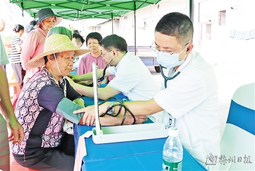活动当天,来自梅州市人民医院、中山大学附属第三医院粤东医院的义诊团队为当地居民提供了义诊和咨询服务,集合了老年医学科、肾内科、神经内科、内分泌科、关节外科、耳鼻喉科、妇产科、儿科、胸外科、泌尿外科、重症医学科等10多个科室的专业医疗力量。活动现场的科普报告环节,医生通过小讲座为群众介绍生活健康知识,让在场居民收获了一份“健康大礼包”。
