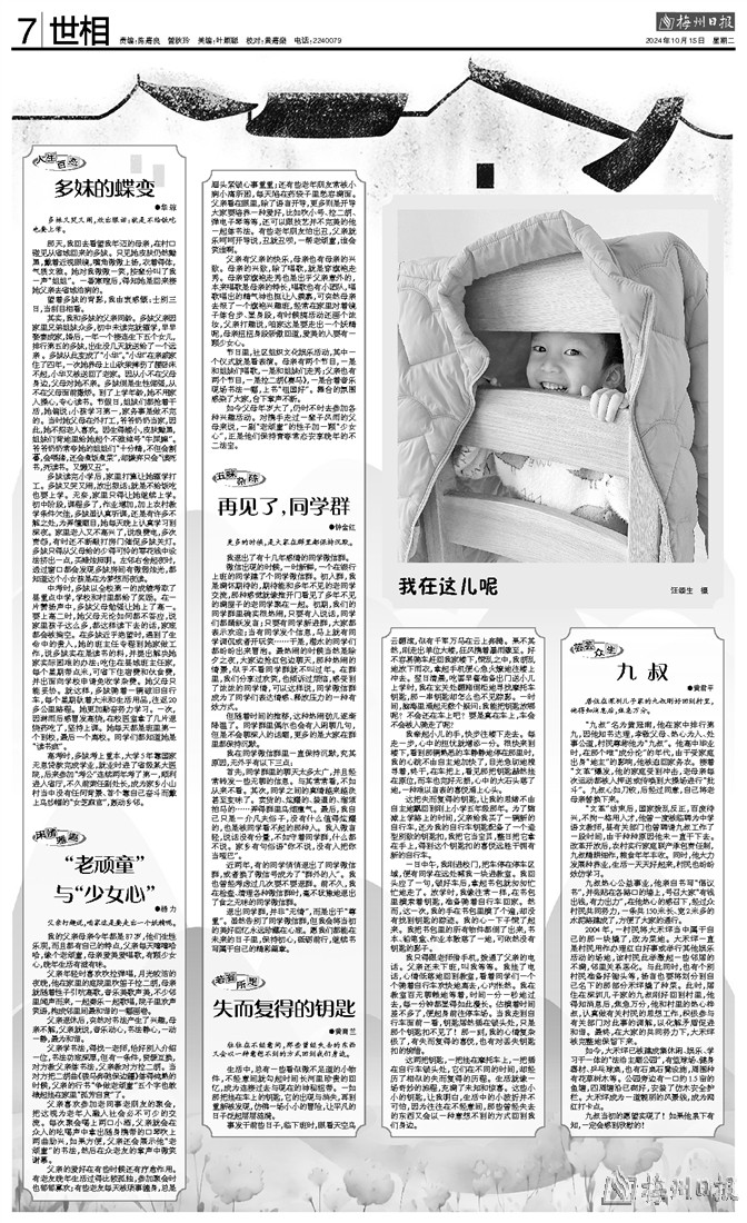 如今父母年岁大了,仍时不时去参加各种兴趣活动。对携手走过一辈子风雨的父母来说,一副“老顽童”的性子加一颗“少女心”,正是他们保持青春常态安享晚年的不二法宝。