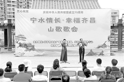 “共同建设美丽新兴宁,宜居宜业乐无边……”在宁江公园,一段段悠扬动听的客家山歌,更是吸引了很多老年朋友前来,熟悉的旋律还让不少山歌爱好者跟着节奏一起哼唱。这场“宁水情长·幸福齐昌”山歌歌会中,12场精彩的节目以传统的竹板歌、客家山歌,结合时代创新的客家流行歌曲、新编山歌,为广大市民群众献上了一场喜闻乐见的非遗音乐歌会。