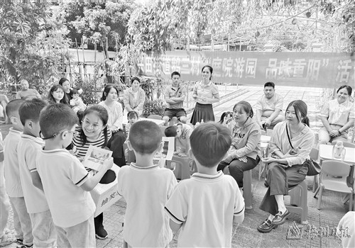 原来,李伟洪的庭院在镇村干部的指导下,被评为“美丽庭院”。重阳佳节期间,在他一家人的热情支持下,村里在他的庭院里组织举办了“庭院游园,品味重阳”活动。活动中,10个家庭共同在庭院内听故事、做手工、玩游戏、诵唐诗。家长们带着自己的孩子,与邻里乡亲一起在庭院里共同享受温馨的亲子欢乐时光,同时也让爱老敬老的良好家风得以传承,让传统文化在儿童心灵深处生根发芽。