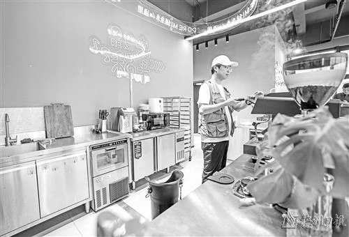 10月15日,在嘉兴市南湖区余新镇长秦村“渔里问道”和美乡村示范片区内的渔BOX乡村咖啡馆,青创客姜野飞为客人制作咖啡。