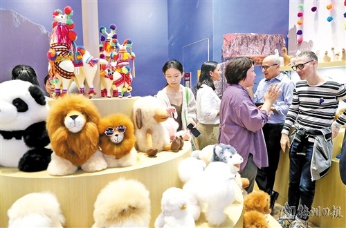 10月16日,参展企业工作人员(右二)在展台上向客商介绍公司产品。
