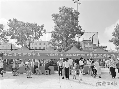 本报讯 日前,五华县医疗保障局联合横陂镇人民政府、中国人民财产保险公司五华支公司、五华琴江医院开展“全民参保 惠及万家”全民参保集中宣传月现场宣传活动,进一步推动2025年度城乡居民医保基本医疗保险参保缴费工作。